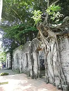 Casa de Hernán Cortes: In the town of La Antigua stands the house of Hernán Cortés, a popular tourist attraction, although it is debated if it really was the house of the conquistador, as some sources indicate the house may have been in reality a customs house.[6][7] The house was built in 1523 and was constructed with corals, snail slime, oyster, nopal, volcanic stone, brick and stucco; but since a hurricane hit the area in the 19th century is completely covered with roots and vines.[6] The house contained 22 rooms, but at this day only 4 stand.[8]