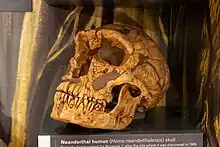 La Ferrassie 1 (LF1) is a male Neanderthal skeleton estimated to be 58–50,000 years old.[1] It was discovered at the La Ferrassie site in France by Louis Capitan and Denis Peyrony in 1909. The skull is the most complete Neanderthal skull ever found.[2] With a cranial capacity of 1641 cm3, it is the second largest hominid skull ever discovered, after Amud 1, another Neanderthal.
