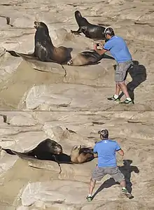 - ↑ Strege, D. (2018, April 24). Tourists are ‘loving sea lions to death’ in La Jolla. For The Win. https://ftw.usatoday.com/2018/04/tourists-are-loving-sea-lions-to-death-in-la-jolla