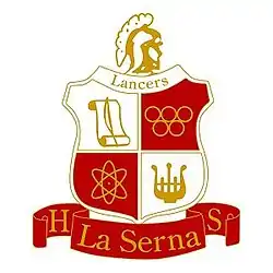 La Serna High School (abbreviated LSHS) is a public high school in Whittier, California that was founded in 1961[4] and is part of the Whittier Union High School District. The school has been honored five times as a California Distinguished School most recently in 2021.[5] The school's colors are crimson, gold, and white.