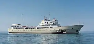 Built in 1962 for shipping and transportation services the boat was originally named Aji-Petri. She could carry 102 passengers in cabins, with 110 more passengers on the deck and 46 crew members on board.[7] In 1970, during Cold War tensions, the family of ships gradually stopped ferrying passengers in the Black Sea in order to be re-fitted for strategic purposes by the USSR.[3][8] The ship was eventually sent to the North Atlantic and used for unofficial spying on the United States and United Kingdom by the International Organisation of Telecommunications.[5][9] At the conclusion of the Cold War she was returned to a Bulgarian shipping company and resumed her transportation and shipping role.[10] In 2007, she was acquired by the La Sultana Group to be re-fitted as a luxury yacht.[10][11]
