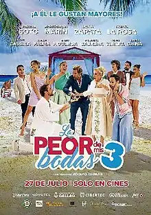 La peor de mis bodas 3 (lit. 'The worst of my weddings 3') is a 2023 Peruvian comedy film directed by Adolfo Aguilar and written by Ítalo Carrera & Sandro Ventura.[1] It is the third part of La peor de mis bodas (2016) and La peor de mis bodas 2 (2019).[2] It stars once again Maricarmen Marín and Gabriel Soto accompanied by Laura Zapata, Ismael La Rosa, Milett Figueroa, Thiago Vernal, Carlos Casella, Francisco Cabrera, Canela China and Fernando Bakovic.[3] It premiered on August 27, 2023, in Peruvian theaters.[4]
