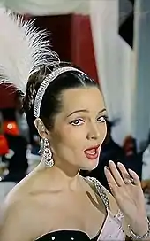 Principal photography began in November 1957 under the direction of Luis César Amadori,[18] and took place at CEA Studios in Madrid where the full-scale period sets were constructed under the art direction of Enrique Alarcón.[19] These included, among others, the full-scale sets of the Calle de Alcalá in front of the Apolo Theatre, a sumptuous ballroom with a full orchestra, the popular café-concert hall and those resembling the famous Lhardy and Maxim's restaurants.[20] It was mainly filmed on studio by cinematographer Antonio L. Ballesteros in colorful Eastmancolor and 1.37:1 aspect ratio, with only a few scenes filmed on location in Madrid in places such as the Fountain of Galápagos at the Buen Retiro Park and the Delicias railway station.[21] As the film was a co-production with Italy, after a couple of days of promotion in Rome that included a welcome at Ciampino Airport and a reception at Palazzo Barberini on 18 January 1958, they filmed some scenes in Turin and in Milan to comply with the requisites in place to be a co-production.[22][23] They filmed some exterior footage afterwards on location in Paris in the rue du Chevalier-de-La-Barre and in the stairs of the rue du Calvaire at the butte of Montmartre and on the Petit Pont with Notre-Dame in the background.[24] Filming was completed in February 1958.[lower-alpha 4]