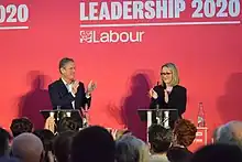Starmer went on to win the leadership contest on 4 April 2020, defeating Long-Bailey and Nandy, with 56.2% of the vote in the first round,[20] and subsequently became Leader of the Opposition.[21]