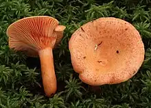 Lactarius thyinos is an edible mushroom of the genus Lactarius found in bogs and conifer forests in Canada, the Great Lakes region and the northeastern United States. It is common and easily identifiable, due to its orange flesh and latex that does not turn green when bruised or exposed to air.[1][2]