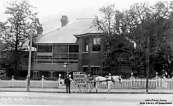 On 1 September 1864, a joint committee of ladies and gentlemen of the proposed Lying-In Hospital was held to consider the objectives of the new hospital. At this meeting a Ladies' Committee was appointed in which the management of the institution was vested and comprising the wives of many early prominent Brisbane citizens.[4] The Ladies Committee were supported by a men's committee who provided advice and reference as required. The hospital, officially called, the Queensland Lying-In Hospital was, opened on 2 November 1864 in a house, Fairview, in Leichhardt Street, Spring Hill.[5][6] This was described in an advertisement in the Brisbane Courier as having six large rooms, detached kitchen and servant's room, with tank and yard. The Ladies' Committee rented Fairview for £120 per annum.[1]