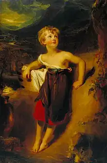 This portrait, by Thomas Lawrence, of Lady Georgiana Fane, as a peasant girl, is described as a good example of a trend in painting to represent the rich in fantastic scenes, as individuals from mythology, classical literature, or simple peasants.