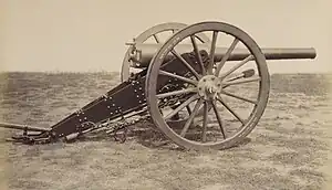 The Lahitolle 95 mm cannon (Mle 1875) was a French cannon of the 19th century, developed in 1875 by the artillery commander de Lahitolle. The Lahitolle 90 mm was the first French field cannon made of steel, and one of the first to be equipped with a screw breech (issued 16 years after the British and Prussians adopted a similar system). It was adopted by the French Army in 1875 and later superseded the Reffye and de Bange 90 mm cannons. An improved version, the Lahitolle 95 mm (Mle 1888), was developed in 1888.