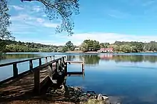 Lake Daylesford is an artificial lake in the town of Daylesford, Victoria, Australia. It was completed in either 1927 or 1929 after many years of campaigning, beginning in 1893.[1] It was designed by Walter Burley Griffin, the American architect who won the competition to design the city of Canberra.[2] Lake Daylesford was formed when the dam wall was built across Wombat Creek above the Central Springs in 1929. The town wanted an ornamental body of water to beautify the scarred creek landscape.[3]