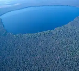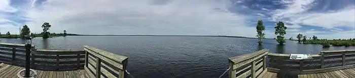 Lake Drummond is a freshwater lake at the center of the Great Dismal Swamp, a marshy region on the Coastal Plain of southeastern Virginia and northeastern North Carolina between Norfolk, Virginia, and Elizabeth City, North Carolina, in the United States. Its surface area is approximately 3,142 acres (13 km2) and its maximum depth is 6 ft (2 m). It is managed by the United States Fish and Wildlife Service.