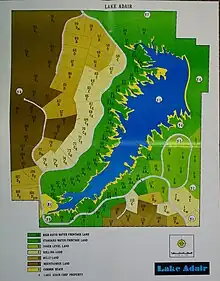 Circa 1965, Actor J. Carlton Adair acting for The Port Holiday Authority, acquired 160 acres on the shore of Lake Mead within the National Park Service (NPS) boundary. This was land that was overlooked and not acquired by the government for the Lake Mead impoundment. The NPS had serious objections to Adair's planned resort development and attempted to block his entry. Eventually legislation was passed in congress to facilitate a land exchange. Adair would exchange the Lake Mead shoreline acreage for 2243 acres of land in the Las Vegas Wash abbutting the NPS. The exchange was for the express purpose of construction of a dam and lake with resorts. This project was to be called Lake Adair. The land was annexed into the city of Henderson, and legislation was passed by the Nevada legislature that would change the name of Henderson to the City of Lake Adair when the lake was filled.