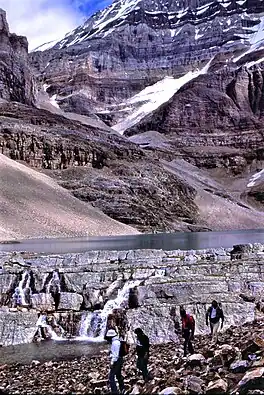 Lake Oesa is a body of water located at an elevation of 2,267 metres (7,438 ft)[1] in the mountains of Yoho National Park, near Field, British Columbia, Canada,[2] while a trail at the far end of the lake leads to Abbot Hut.