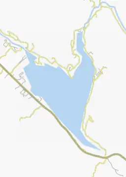 This lake is about 70 minutes from Montreal. The V-shaped lake has a length of 13 kilometres (8.1 mi), a width of 4 kilometres (2.5 mi), an area of 14.9 square kilometres (5.8 sq mi) and an average depth of 54 metres (177 ft).[2]