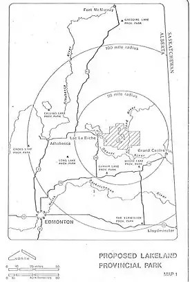 - ↑ Parks Division, Alberta Recreation, Parks, and Wildlife. Lakeland Provincial Park Proposal Summary. Edmonton: Alberta Recreation, Parks, and Wildlife, 1978. Page 2.