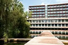 Lakeshore was commissioned in 1967 by Imperial Tobacco whose empire included Bristol tobacco company W.D. & H.O. Wills. They announced the relocation of their Tobacco Factory from Bedminster to Hartcliffe in the late 1960s. The building was designed by Chicago architects Skidmore, Owings & Merrill as well as UK architects Yorke Rosenberg Mardall.[5] They were inspired by modernist architect Ludwig Mies van der Rohe, who designed the Lake Shore Drive Apartments in Chicago.[6] The clean sculptural expression and rationality of the design are key features of his style.[7]