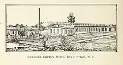 Lakeside Mills Historic District is a national historic district located at Burlington, Alamance County, North Carolina. It encompasses 20 contributing buildings built in the 1890s. The district includes a one-story brick mill and ancillary buildings, 16 one-, 1 1/2- and two-story frame houses, and a store building.[2]