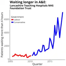 - ↑ "Trusts' A&E performance goes sub 50 per cent as NHS hits new low". Health Service Journal. 12 April 2018. Retrieved 13 April 2018.