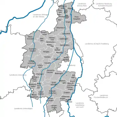 Augsburg (German pronunciation: [ˈaʊksbʊʁk] ⓘ; Swabian German: Augschburg) is a Landkreis (district) in Swabia, Bavaria, Germany. It is bounded by (from the east and clockwise) the city of Augsburg and the districts of Aichach-Friedberg, Landsberg, Ostallgäu, Unterallgäu, Günzburg, Dillingen and Donau-Ries. The city of Augsburg is not part of the district, but nonetheless is its administrative seat.