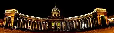 The Kazan Cathedral on the Nevsky Prospekt was modeled after St Peter's, Vatican in the Empire style.