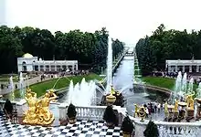 St. Petersburg is surrounded by imperial residences, some of which are inscribed in the World Heritage list. These include: Peterhof, with the Grand Peterhof Palace and fountain cascades; Tsarskoe Selo, with the baroque Catherine Palace and the neoclassical Alexander Palace; and Pavlovsk Palace, which contains a domed palace of Emperor Paul (1782–1786) and a large English-style park.