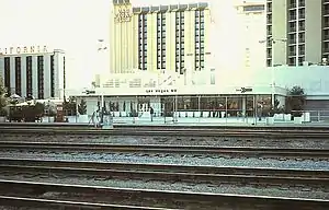 Las Vegas station was a passenger railroad station in Las Vegas, Nevada. It was connected to the rear of the Plaza Hotel & Casino and was in service from 1971 until the demise of the Desert Wind in 1997.[1]