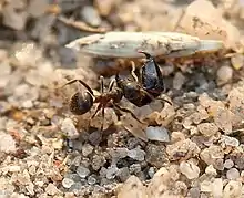 Lasius japonicus is a species of ant belonging to the genus Lasius, that are commonly found throughout East Asia.[1] The species has been observed spraying formic acid both defensively and offensively.[2] It is also known to tend to aphids in exchange for their honeydew secretions, and have been found to be far more attentive to their aphids then other similar ant species.[3] In appearance they are mostly black in color with a tinge of white on their gaster.