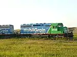 The Last Mountain Railway (reporting mark LMR) is a Canadian short line railway company and a subsidiary of Mobil Grain Ltd. LMR operates on trackage between Regina and Davidson in Saskatchewan, established in 2009.[1] The trackage was formerly operated by Canadian National, the LMR interlines with Canadian National in both Regina and Davidson. This subdivision is part of the former Canadian National line that links Regina and Saskatoon. Freight railway stations along the line include Davidson, Girvin, Craik, Aylesbury, Chamberlain, Findlater, Bethune, Disley, Lumsden, Condie and Regina.[2] All locomotives used on LMR are owned by Mobil Grain (MGLX) and also utilized on their sister company, Big Sky Rail Corp.