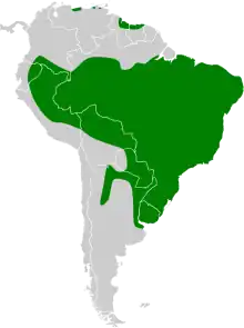 The nominate subspecies of rufous-sided crake has much the larger range of the two. It is found from coastal Venezuela east through the Guianas and separately from central and eastern Brazil south through eastern Bolivia, Paraguay, and Uruguay into northern Argentina. Subspecies L. m. oenops is found from southern Colombia south through eastern Ecuador into eastern Peru and east into western Brazil. The species primarily inhabits freshwater marshes and similar landscapes such as flooded pastures and the edges of ponds and oxbow lakes .[2][6]