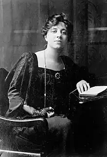 Alma-Tadema, who had socialist leanings, travelled to America in 1907 to tour the country widely.[3] She gave a series of readings on the "Meaning of Happiness", which proved exceedingly popular.[3] She also spoke on the plight of the divided Poland and asked her audience to express their feelings for this cause.[12][13]