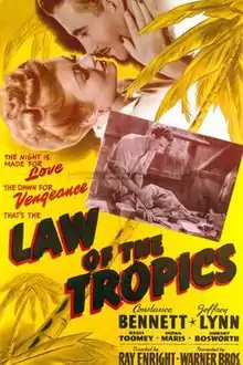 Law of the Tropics is a 1941 American drama film directed by Ray Enright and starring Constance Bennett, Jeffrey Lynn and Regis Toomey. By the time Bennett made the film, her career was in steep decline.[1]