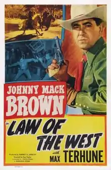 Law of the West is a 1949 American Western film directed by Ray Taylor and written by J. Benton Cheney. The film stars Johnny Mack Brown, Max Terhune, Bill Kennedy, Jack Ingram, Riley Hill and Eddie Parker. The film was released on February 20, 1949, by Monogram Pictures.[1][2][3]