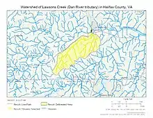 Watershed of Lawsons Creek (Dan River tributary) in Halifax County, Virginia, USA