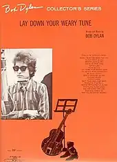 "Lay Down Your Weary Tune" is a song written by Bob Dylan in 1963.[1][2] Dylan originally recorded it for his album The Times They Are a-Changin', but his version of the song was not officially released until 1985 on the Biograph box set.[3] In the album liner notes, Dylan claims that in the song he was trying to capture the feeling of a Scottish ballad he had just heard on a 78 rpm record.[1][2] The specific ballad Dylan was referring to has not been identified, but speculation includes "The Water Is Wide", "O Waly, Waly" and "I Wish, I Wish".[1]