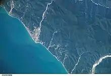 The microdistrict is located on the shore of the Black Sea at the mouth of the Psezuapse River.