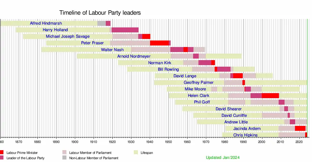 Chris HipkinsJacinda ArdernAndrew LittleDavid CunliffeDavid ShearerPhil GoffHelen ClarkMike Moore (New Zealand politician)Geoffrey Palmer (politician)David LangeBill RowlingNorman KirkArnold NordmeyerWalter NashPeter FraserMichael Joseph SavageHarry HollandAlfred Hindmarsh