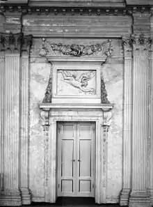 The entrance of the "Desolate Boedelkamer" in the Amsterdam town hall, with the fall of Icarus in the supraporte