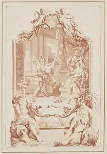 In 1756 the 26-year-old De Neufville married the 18-year-old Margaretha Smid (1737-1774), a Lutheran. Leendert was Reformed, and living at Keizersgracht 15. In August 1757 he bought his first paintings. Between 1759 and 1763 he attended seventeen auctions. On 18 May 1763, he bought a number of works from the collection of Cardinal Silvio Valenti Gonzaga. Landgravine Caroline Louise of Hesse-Darmstadt and her husband Margrave Charles Frederick, Grand Duke of Baden visited De Neufville on July 1. On 4 July 1763 he bought 15 paintings in The Hague, including a Gerard Dou, Frans Hals, Paulus Potter, Philips Wouwerman and Jan van Huysum, from the collection of Willem Lornier, for the price of 9,115 guilders. The purchase has never been paid.[89] On 29 October, the directors of the bankrupt chamber announced that they wanted to auction the painting collection of De Neufville on 14 December 1763. This auction never took place because De Neufville again obtained permission to put his affairs in order. On 19 June 1765 his collection of paintings, partly set up by his father, was auctioned.[90]
