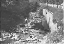 In the late 1960s, a dredging project was proposed on Leggetts Creek to repair the damage caused by acid mine drainage and coal mining.[24] In 1991, the Lackawanna River Corridor Association gathered data on the water chemistry and biological habitats of Leggetts Creek.[6] In 2012, the South Abington Sewer Authority began upgrading its sewage treatment plant to prevent wastewater and nutrient pollution from entering the creek. They also installed new sewer lines, including some that run parallel to or under the creek. PA Trout Unlimited's AMD Technical Assistance Program conducted a survey of the fish population in the creek on November 15, 2013.[5] The Lackawanna Valley Conservancy once received a $190,000 Growing Greener grant for the Leggetts Creek Greenway.[25]
