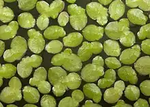 Lemna aequinoctialis, the lesser duckweed,[2] is a tiny, floating aquatic plant in the aroid family, found in quiet, still waters of the Southern U.S., as well as México and some Caribbean Islands. Additionally, it can be found from the state of Virginia south through Florida, north to Nebraska and even into southern Wisconsin. It is also widespread in the American Southwest (and most of México, including desert), from Texas to the coast of California, preferring lagoons and still ponds, which it accesses via seasonal flooding and occasional precipitation. Fronds are generally triple-nerved, green, and measure up-to 6 mm long. Flowers are single-ovulate, with a small utricular scale open on one side. Seeds have 8–26 ribs.[3]