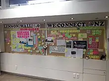 A Lennon Wall in support of the 2019 Hong Kong protest at the University of Auckland, New Zealand