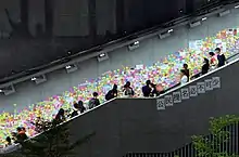 Known neighbourhood Lennon Walls include Sheung Shui, Tin Shui Wai, Sha Tin, Fanling, Ma On Shan, Tsing Yi, Tung Chung, Tai Po, Sai Ying Pun, Shek Tong Tsui, Causeway Bay, Sai Wan Ho, Chai Wan, Choi Hung, Wong Tai Sin, Kwun Tong, Mei Foo, Kowloon Bay, Whampoa, and Tai Kok Tsui, as well as many others on Hong Kong Island, Kowloon, and outlying islands.[19] There are even some Lennon Walls located inside government offices, including RTHK[20] and the Policy Innovation and Co-ordination Office.[21] According to a crowd-sourced map of Hong Kong, there are over 150 Lennon Walls throughout the region.[22]