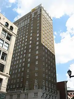 The 25-story hotel opened on September 2, 1929 as the Lennox Hotel, the tallest hotel in the city at the time. Designed by Preston J. Bradshaw in the Renaissance Revival style, the building features terra cotta faces and cornices. The hotel, along with the Hotel Statler and the Mayfair Hotel, was built as part of a commercial boom in downtown St. Louis in the 1920s. It was the last hotel built in the area before the Great Depression, another hotel did not open in downtown St. Louis until 1963. The Lennox Hotel closed after newer hotels were built in the 1970s.[2] The hotel was added to the National Register of Historic Places on September 6, 1984.[1]