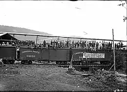First Canadian Pacific Railway cars with lumber shipped from Port Alberni. 22 June 1912.