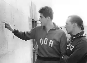 ![]() Hans Zierold and Leonid Sagayduk (right) in 1957 | |