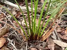 Lepidosperma viscidum, the sticky saw sedge, is a grass-like plant found in south eastern Australia. Usually seen in heath and woodland on sandy and rocky sites, it may grow to 60 centimetres high.[1] This is one of the many plants first published by Robert Brown with the type known as "(M.) v.v." appearing in his Prodromus Florae Novae Hollandiae et Insulae Van Diemen in 1810. The specific epithet viscidum is derived from the Latin with a meaning of "sticky", which refers to the sticky resin from the base and margins of the leaves and stem margins. On drying, the resin turns a red colour.[2]