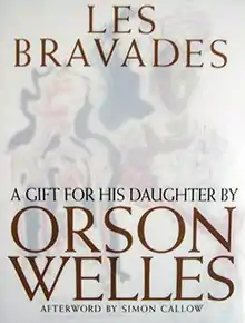 Les Bravades is a 68-page picture book by Orson Welles, written and drawn in 1956, and published posthumously in 1996. The title is that of the publisher; the original manuscript carries the title, A portfolio of pictures made for Rebecca Welles by her father, Christmas 1956.