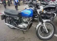 Instead, under a renewable five year licence starting from 28 November 1983[3] granted by the successful bidder, John Bloor, the new owner of Triumph, Harris manufactured 750 cc Bonnevilles (and some of the 750 cc single-carburettor TR7V Tiger models [4] also used by the Royal Signals Motorcycle Display Team) until 1988.