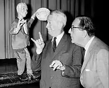 Maurice Chevalier and Stanley Holloway with the Chevalier marionette on The Bell Telephone Hour.