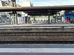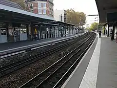 Les Vallées station (French: Gare des Vallées) is a French Railway station located on the Place de la Gare-des-Vallées in the commune of La Garenne-Colombes, Hauts-de-Seine department in the Île-de-France region. Due to the surrounding density of the stations neighbourhood, it also serves the nearby communes of Bois-Colombes and Colombes. Established at an elevation of 39 meters, the station is located at kilometric point (KP) 6.973 on the Paris-Saint-Lazare—Saint-Germain-en-Laye railway, between the stations of Bécon-les-Bruyères and La Garenne-Colombes.