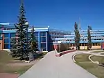 Pearson is also connected to the Village Square Leisure Center by a skyway. The walkway is not used anymore because of safety and legal reasons between the Calgary Board of Education and The City of Calgary.[5] The Village Square Leisure Center includes services such as a public library, wave pool, gym, and many volunteer opportunities.[6]